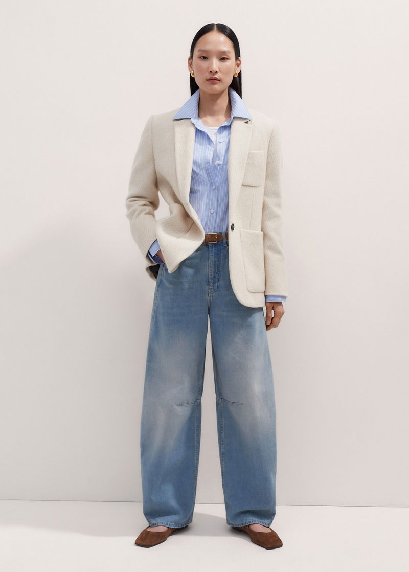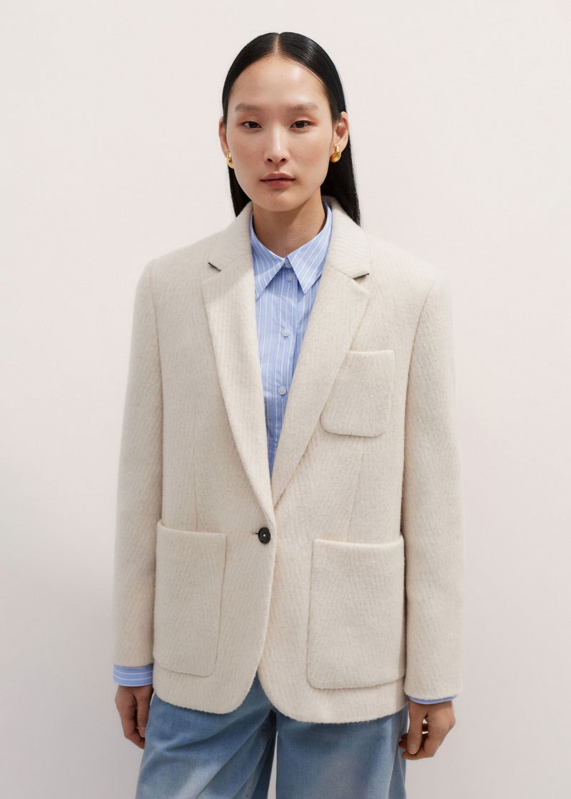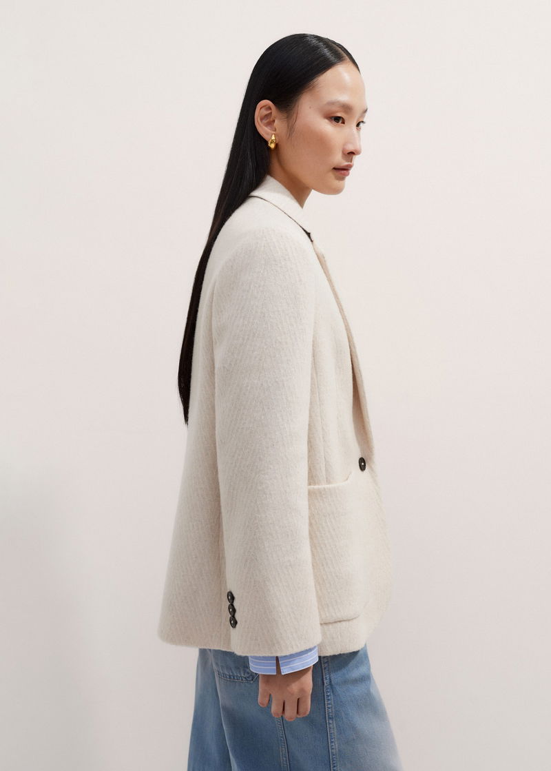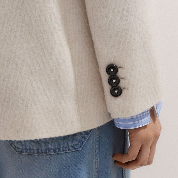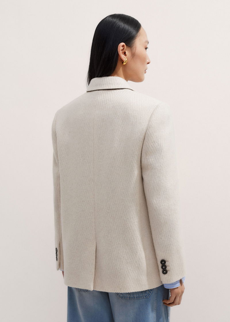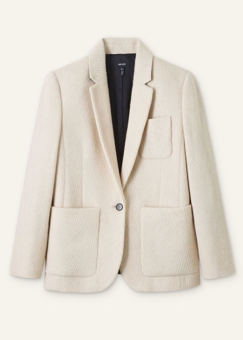ME+EM's Ivory Wool Herringbone Jacket works equally well with classic neutrals during the week and bold colours through the weekend.