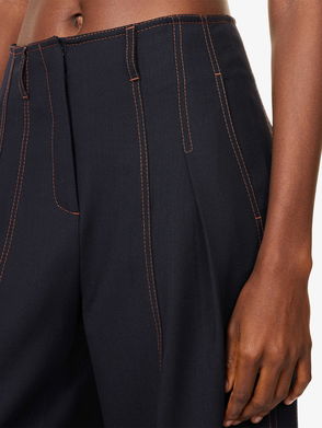 The invigorating red of these trousers is broken up with soft blue and white side stripes. Everything about the cut and design has been meticulously considered to create the most flattering fit. The wide, slightly flared leg shape is finished with a vent which serves to elongate and slim the leg. The mock back pockets ensure a seamless silhouette, whilst the front pockets are vertical and subtle. Wear for an instant boost to your wardrobe and mood.