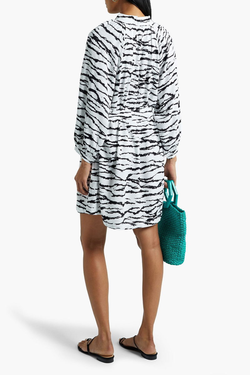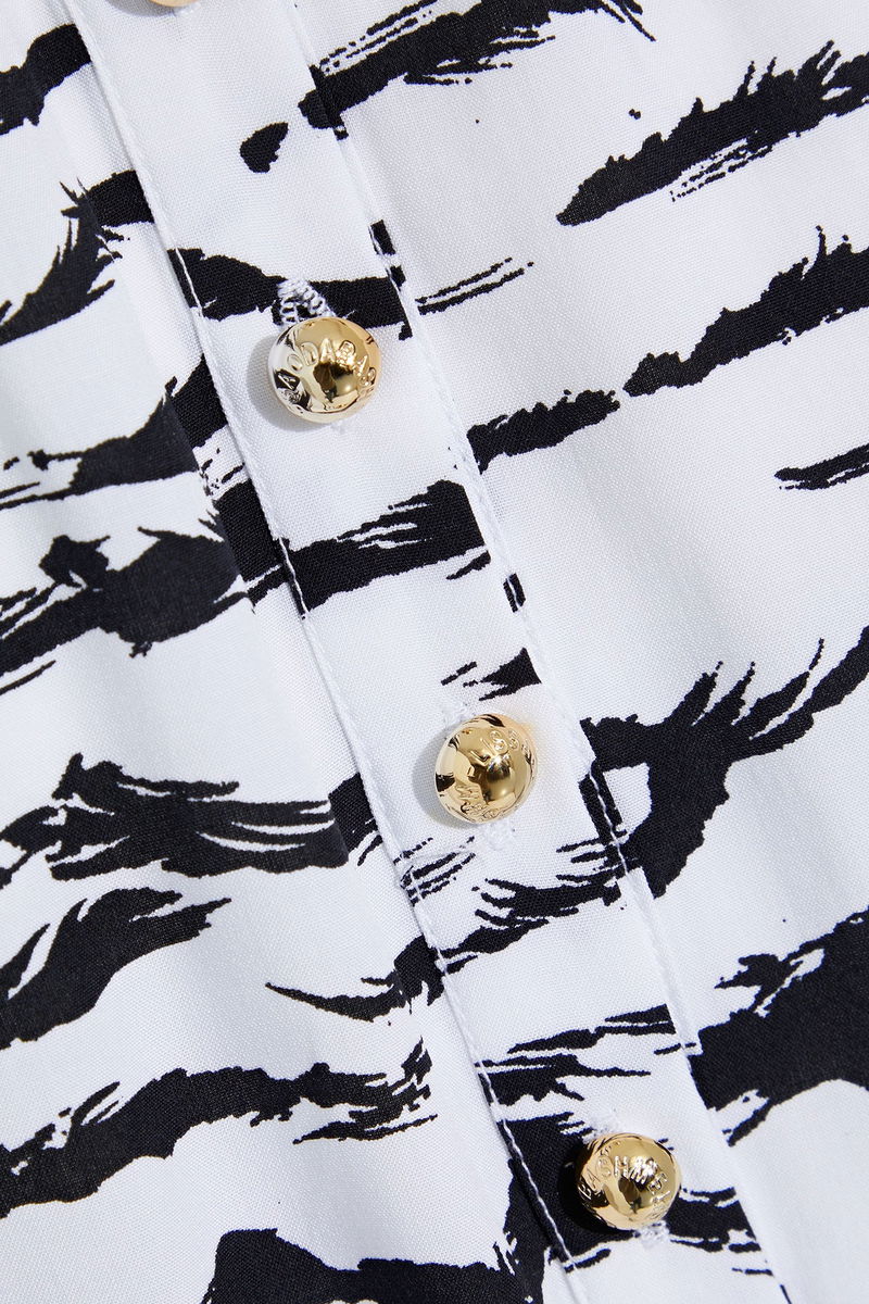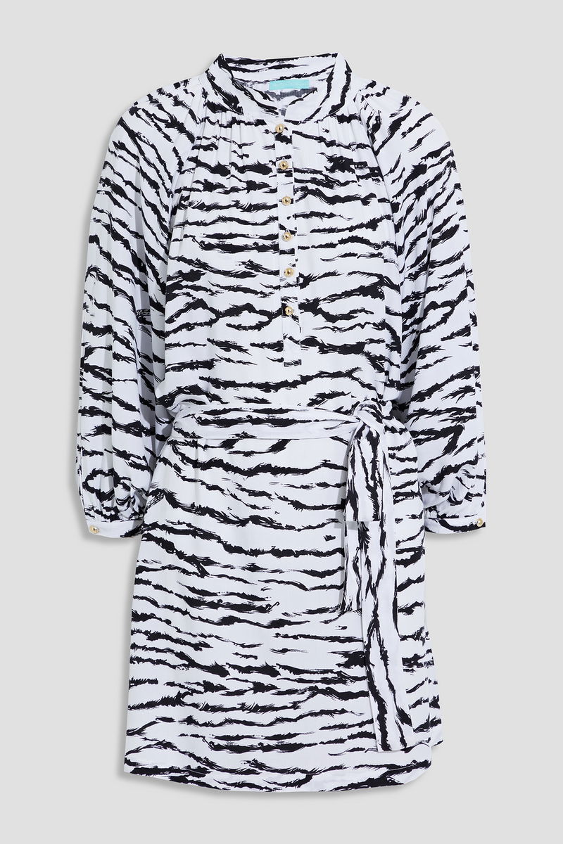 Dress, Tiger-print, Voile, Gathered, Belt loops, Detachable waist tie, Buttoned cuffs, Two side slit pockets, Button fastenings along front, Non-stretchy fabric, Mid-weight fabric, Dry clean.