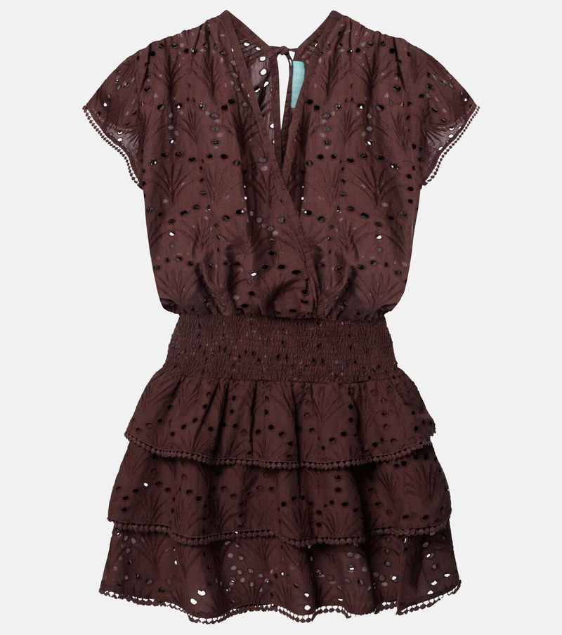 After working as a swimwear model, Melissa Odabash used her experience to create designs that are equal parts stylish and comfortable. This breezy minidress is crafted from crisp cotton with an all-over broderie anglaise pattern and a shirred waist.