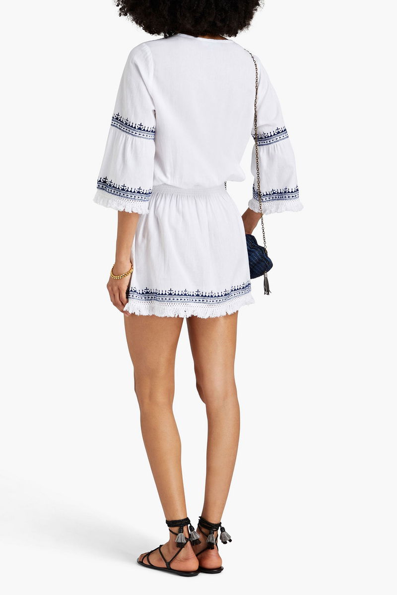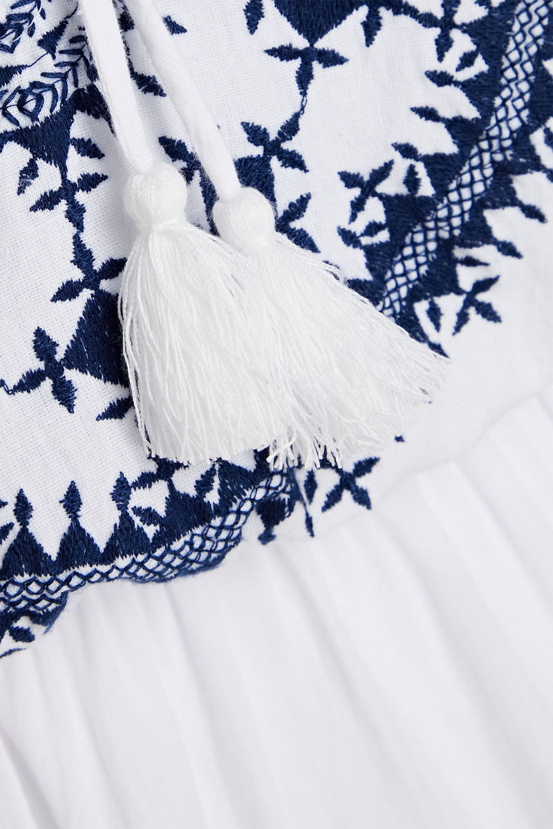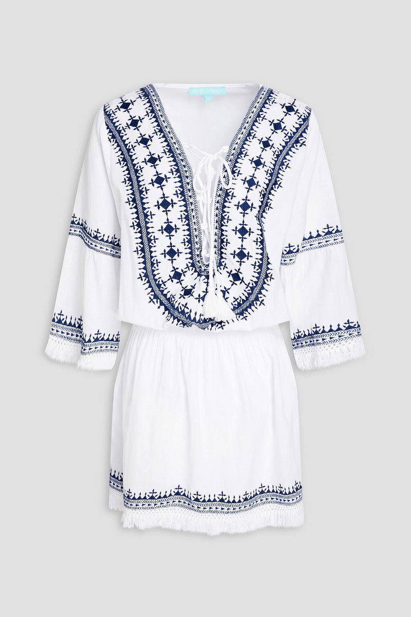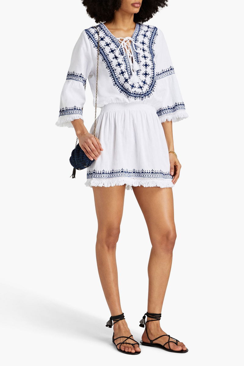 Dress, Cotton and linen-blend, Embroidered, Lace-up front, Shirred, Tasseled trims, Elasticated waist, Slips on, Non-stretchy fabric, Mid-weight fabric.