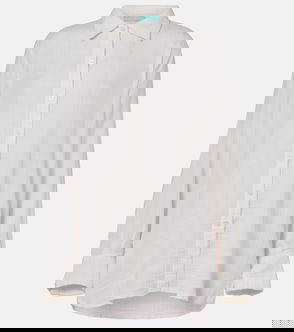 Woven embroidered coverup. Featuring eyelets, gathered, lace-up front, elasticated cuffs and non-stretchy mid-weight fabric.