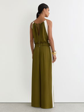 Mes Demoiselles conveys the serene image of wispy cirrus clouds with the blue tie-dye pattern of this effortless white jumpsuit. It’s crafted from cotton twill with a deep V-neckline and tapered legs, then finished with a side welt pockets. Add flat sandals and cinch in the waist with the long tie to define the relaxed shape.