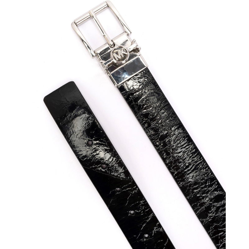 The Michael Kors Belt showcases a lustrous metallic finish, bringing subtle style to your accessories collection. Designed with adaptability in mind, this accessory transcends gender boundaries, defining the waist with its sleek profile, complementing both casual and dressy outfits.