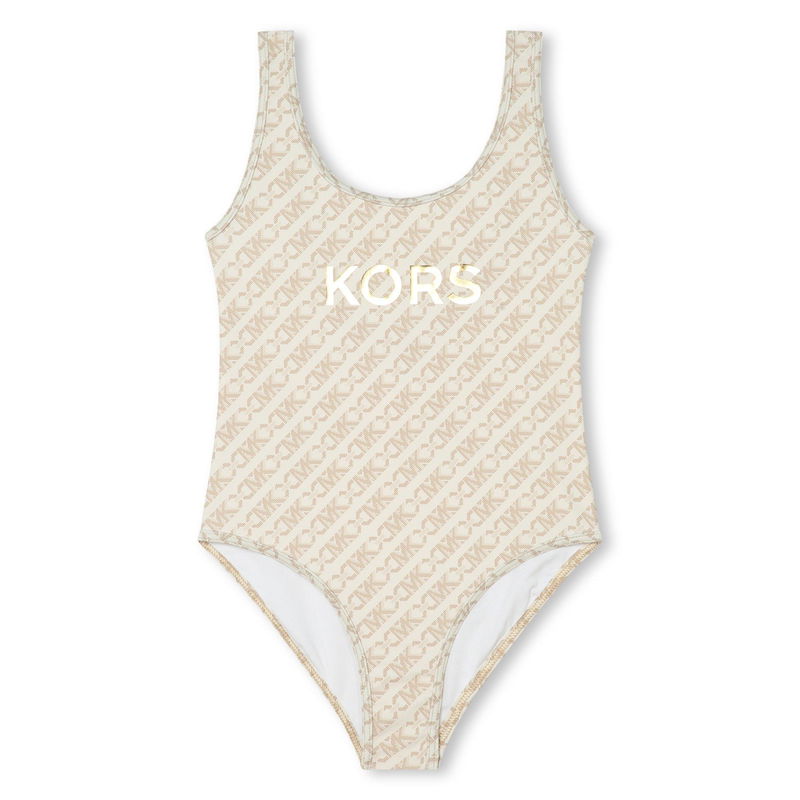 The Michael Kors Kids' Print Scoop Neck Swimsuit features a playful print designed to bring style and function together for young swimmers.