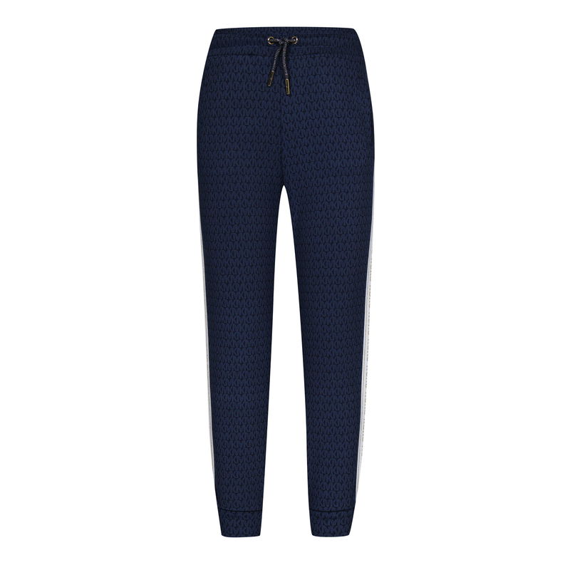 The elasticated waistband with a drawstring fastening ensures a personalized fit, allowing you to stay comfortable throughout the day. With two open hand pockets and a back pocket, these joggers provide ample storage space for your essentials. The ribbed cuffs add a touch of refinement, creating a tapered silhouette that flatters any figure. The all-over monogram logo pattern showcases the brand's iconic design, while the branded tape detailing down the sides, complete with a subtle glitter finish, lends a touch of glamour. Whether you're running errands, relaxing at home, or meeting friends for a casual outing, these Monogram Logo Joggers effortlessly combine style and comfort.