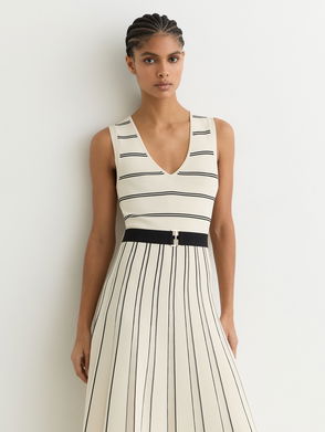 Princess seams provide this simple sheath dress with flattering appeal. The clean-lined silhouette is tailored in a viscose-blend and completed with an exposed back zipper. Wear it from the office to out with statement heels.