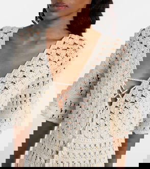 Miguelina's 'Lily' dress is intricately crocheted from cotton for an open construction and lined in voile for coverage. It has long, self-tie shoulder straps and a floaty, softly pleated skirt. Wear yours with lace-up sandals and a tote.