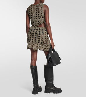 Top, Striped, Pima cotton, Crochet, Scalloped trims, Cropped, Ties at neck, Ties at back, Mid-weight knit.