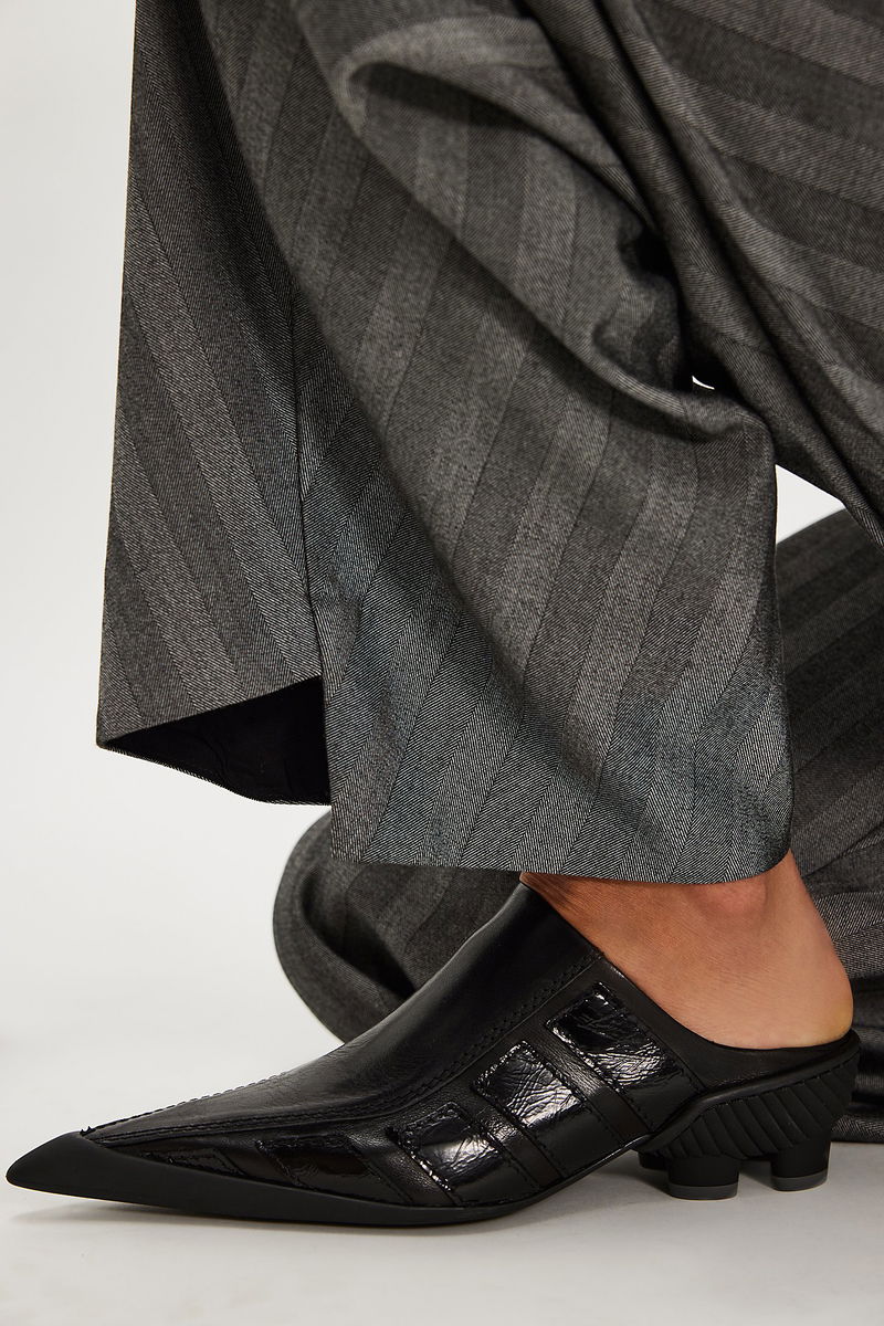 Sleek, sharp, and so distinctive, these cleated mules from Miista feature smooth leather uppers, sporty striped detailing on the sides, a toe capped with a pointed rubber cup, and a unique, cleat-style heel, for the coolest pair in your collection.