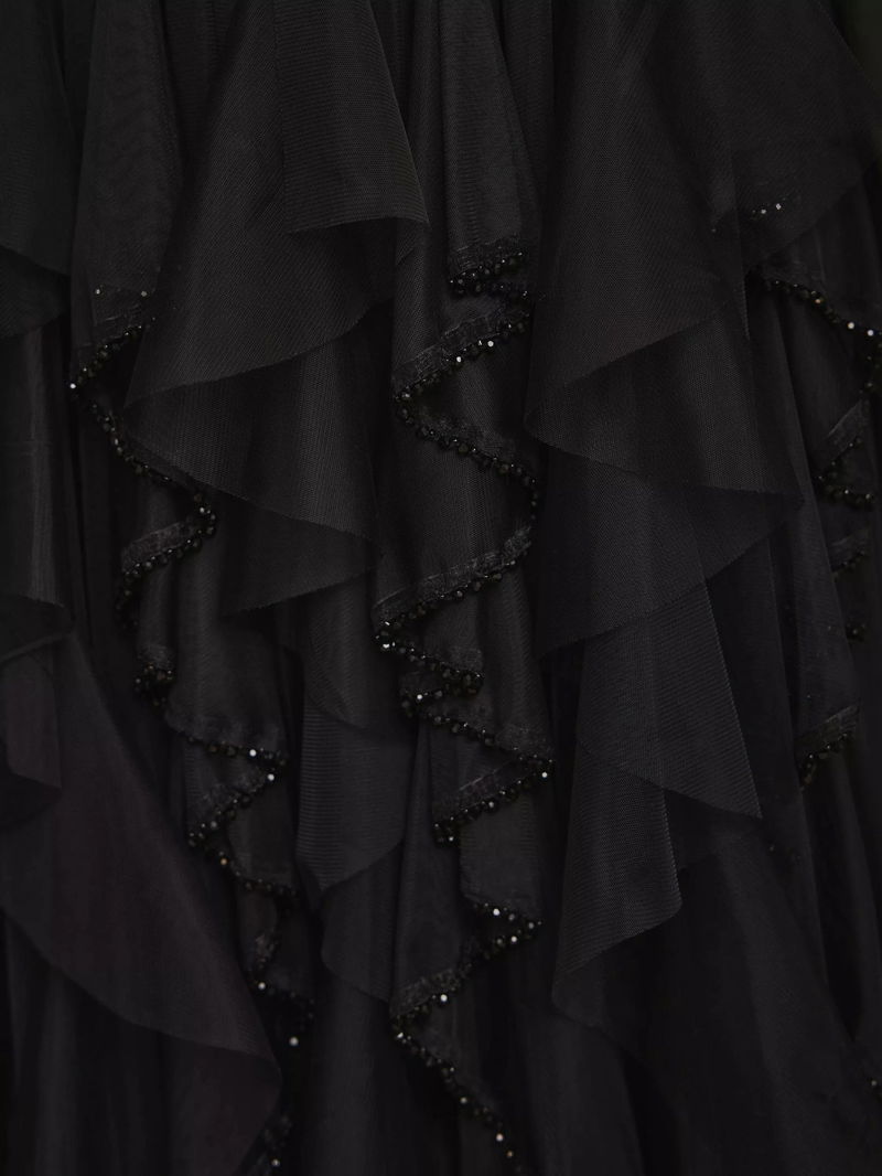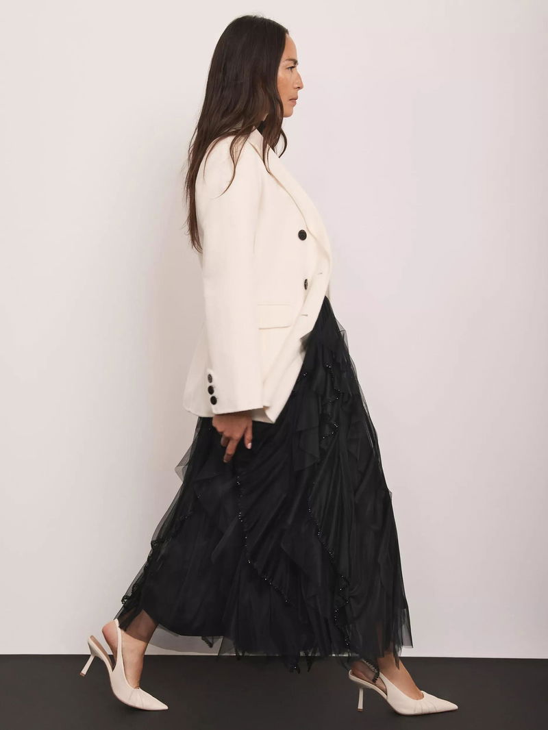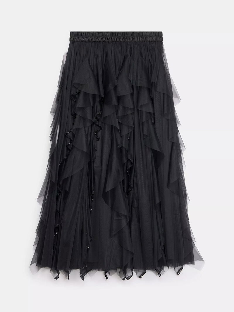 Beaded Ruffled Maxi Skirt