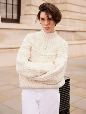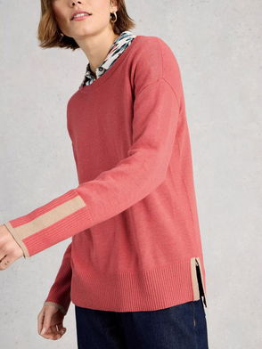 This season, even our basic knits are panelled with blocks of playful colour. This loose-fitting version combines a boxy silhouette with dropped shoulders and split sides, all in a delicate palette of pastel-pink, silver-grey and delicate fuchsia details. Pair yours with new-season denim and a bold boot. Model is 5'10in and wears a UK size M. The length from the side neck point to the front hem measures 61cm/24in.