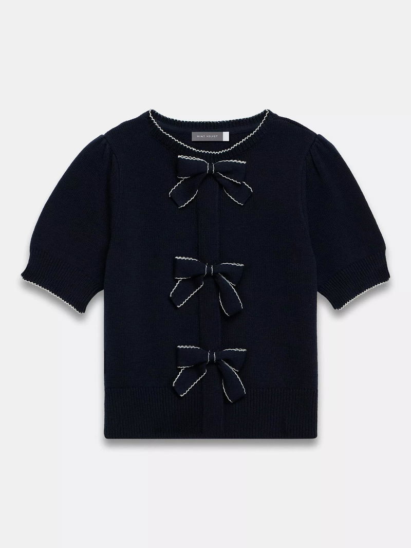 Bow Detail Knit Top, Navy