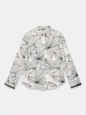 A broderie shirt in a cropped silhouette with a classic collar, long sleeves, buttoned cuffs, scallop trim with a concealed button fastening through the front.