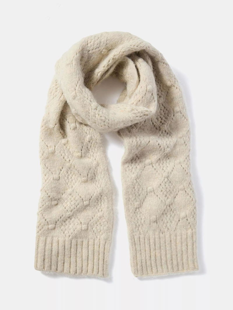 Wrap yourself in the soft, textured comfort of this wool blend cable knit scarf from Mint Velvet, keeping you cosy on chilly days while adding a refined finish to your everyday look.