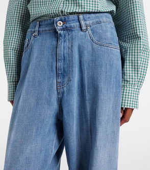 Mint Velvet Contrast Denim Wide Leg Mid Rise Jeans.