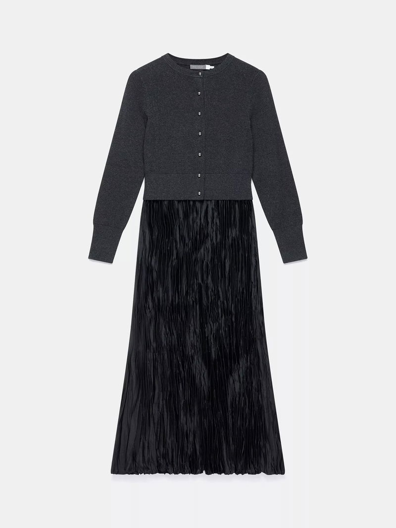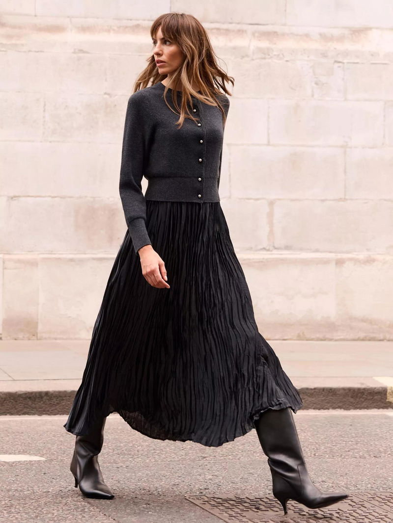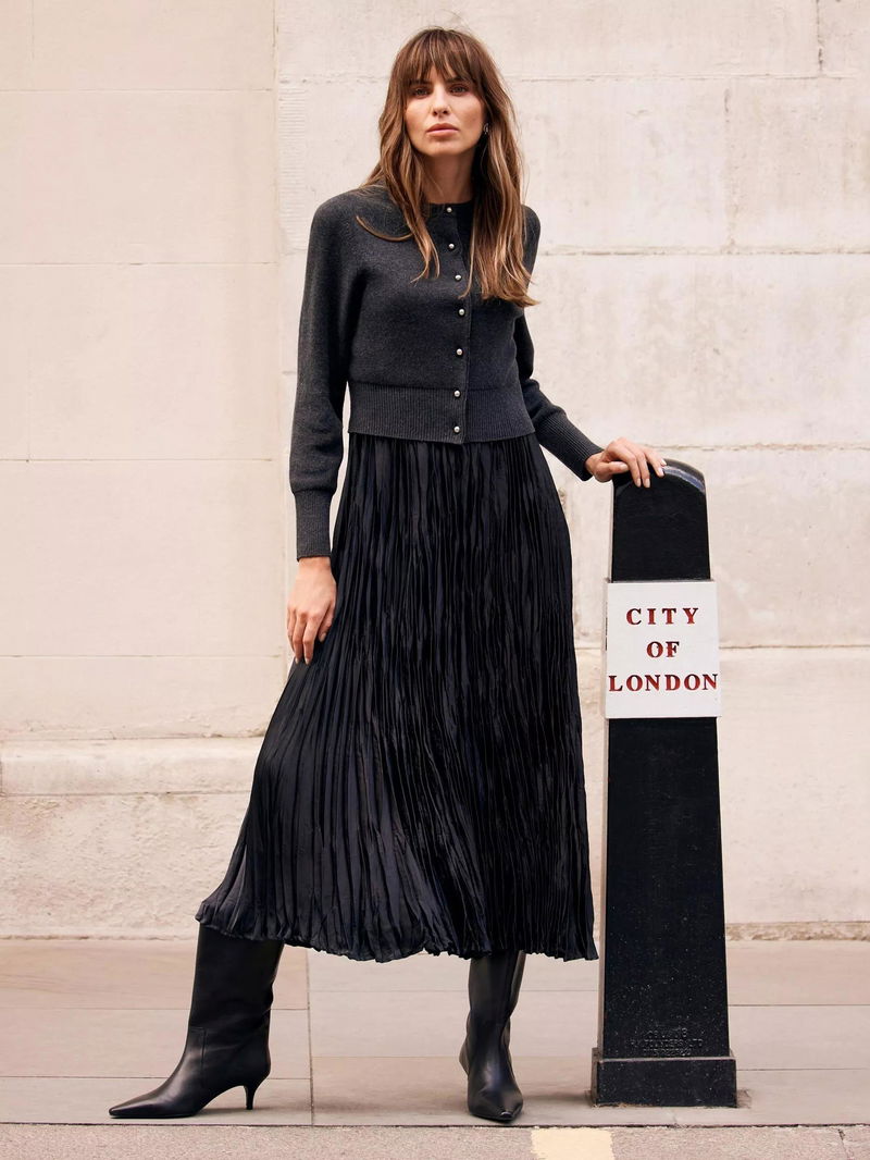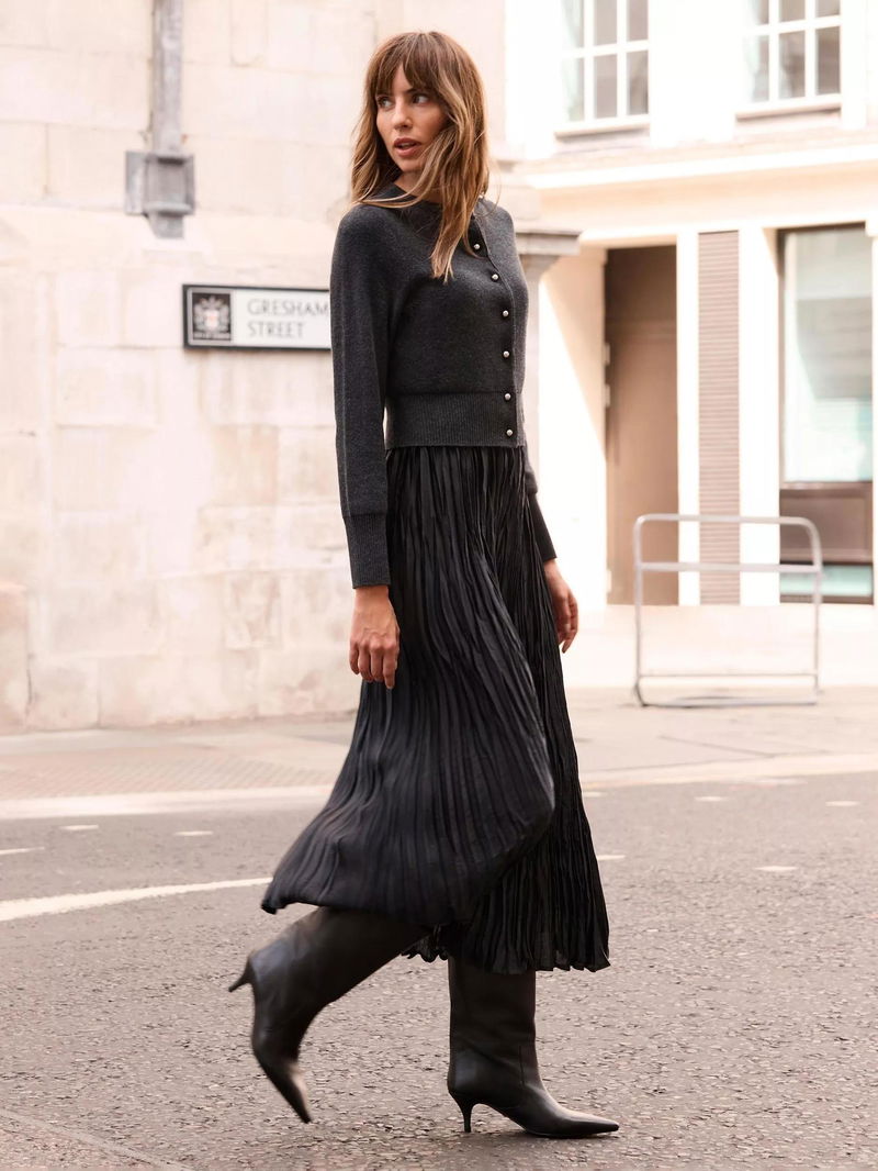 How to make an A-line silhouette even more flattering? Just add pleats. This long-sleeved cotton blend midi dress by Mint Velvet is framed with a round neck and a goes-with-anything plain design.