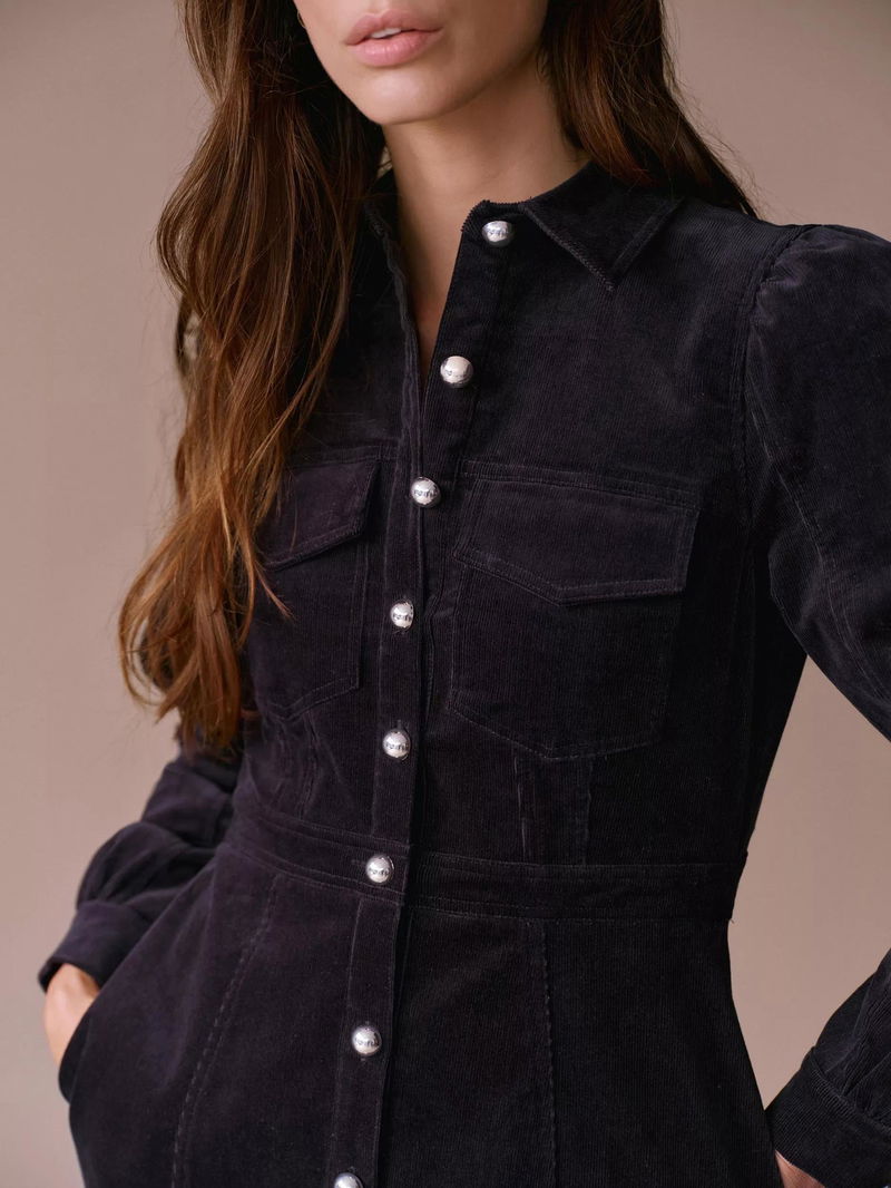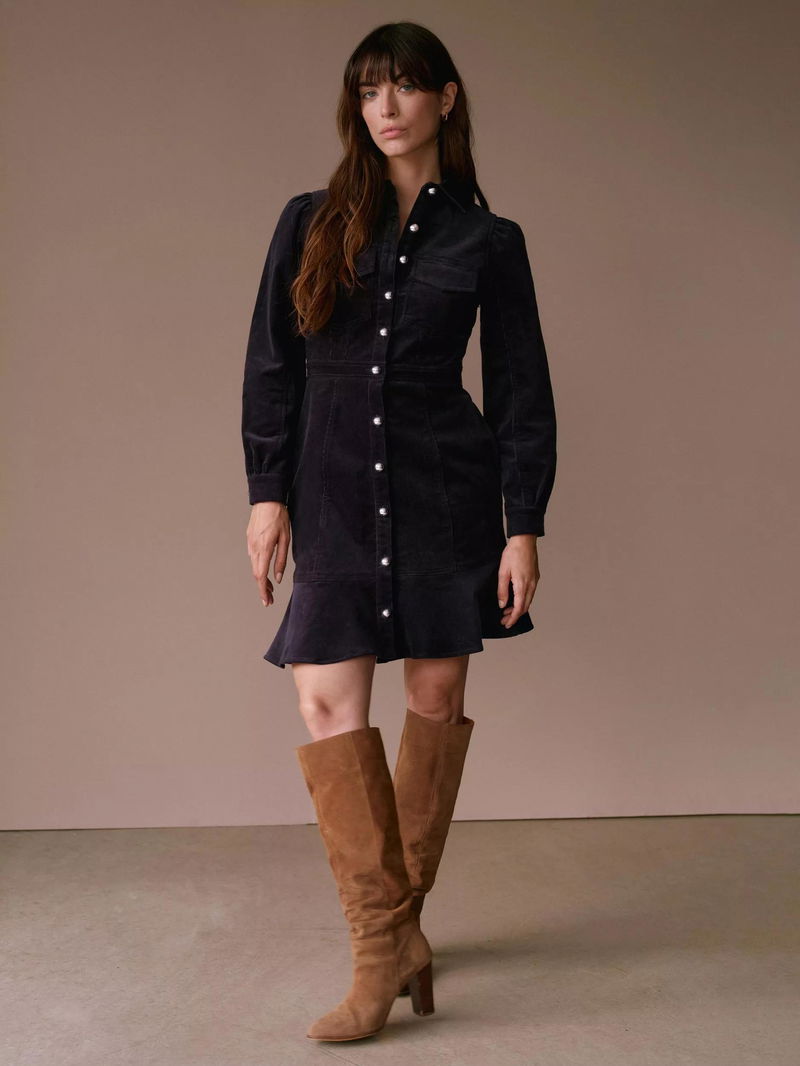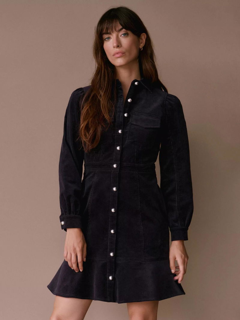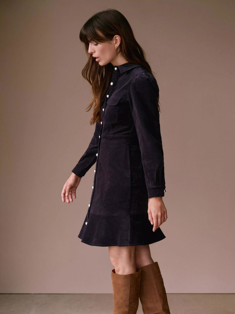 Cotton Blend Long Sleeve Corduroy Mini Dress