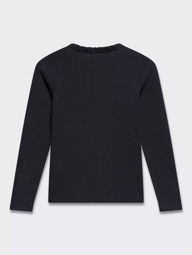 Cotton Blend Long Sleeve Round Neck Top