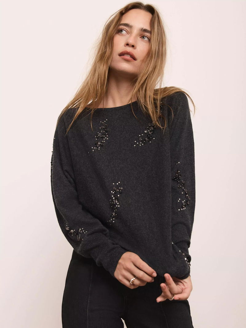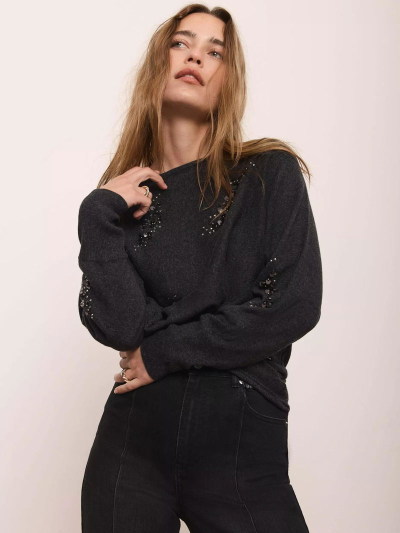 Created using a cotton blend, this mid-weight slash neck jumper by Mint Velvet has a neat feel thanks to the embellished design.