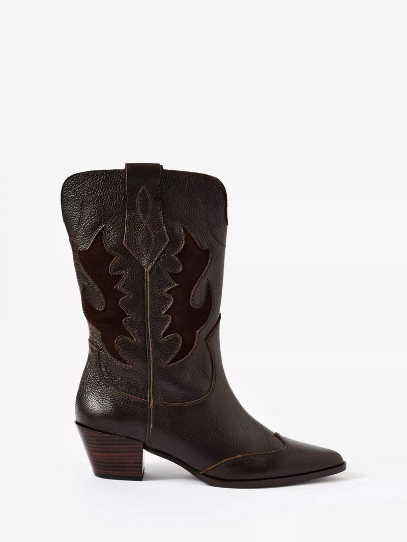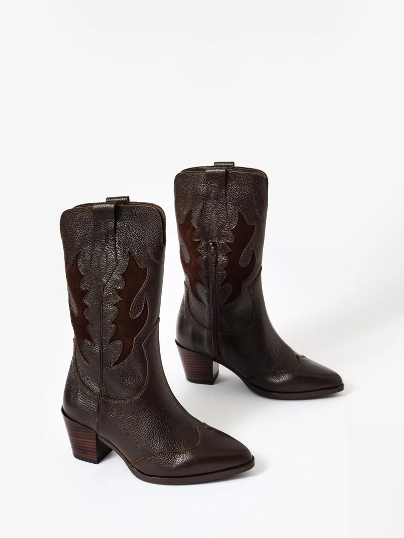 Dulcie Leather Cowboy Boots, Dark Brown