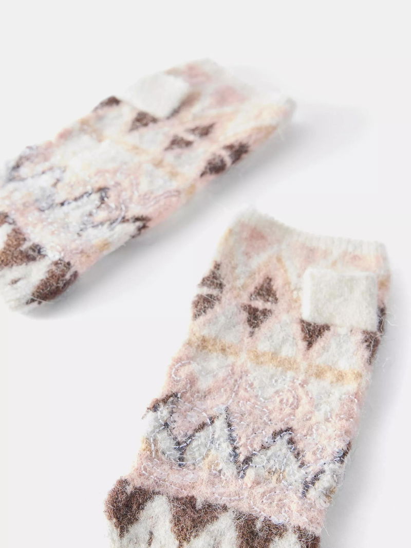 Fair Isle Fingerless Gloves, Ivory/Multi