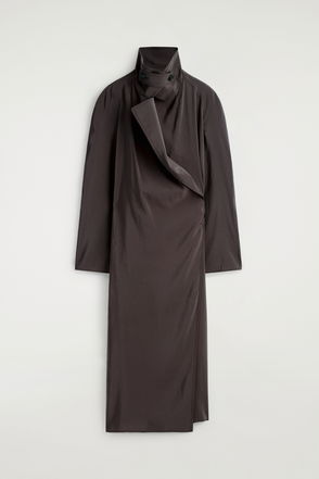 Description: Brown dress in a midi silhouette with a crew neckline, cap sleeves, fishtail hemline with a button fastening through the back. Materials: Main: 100% viscose, Lining: 100% recycled polyester Product Code: 113669746