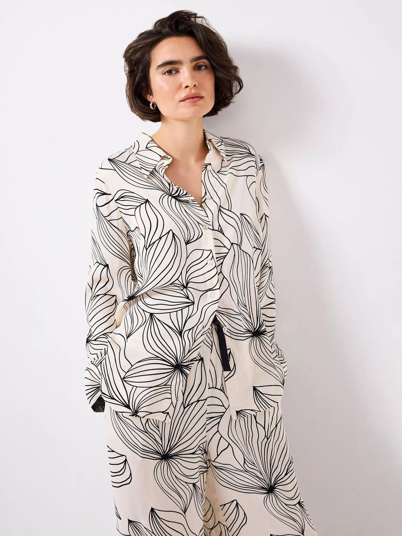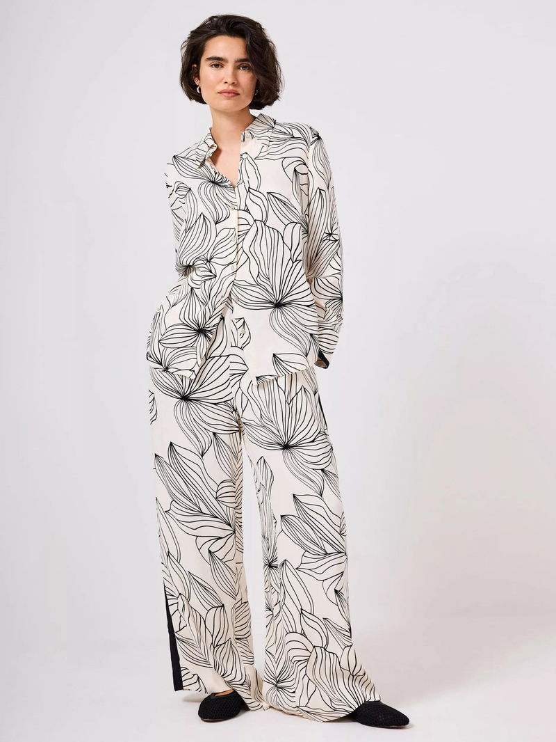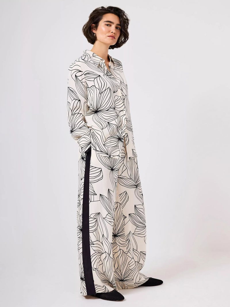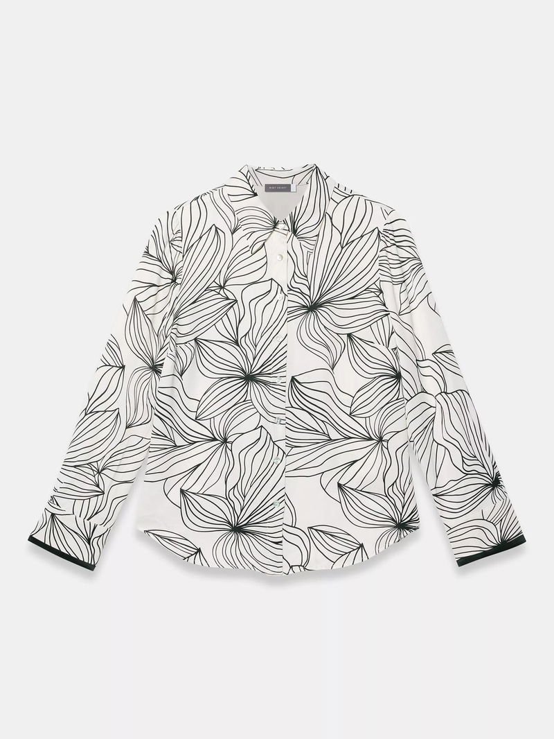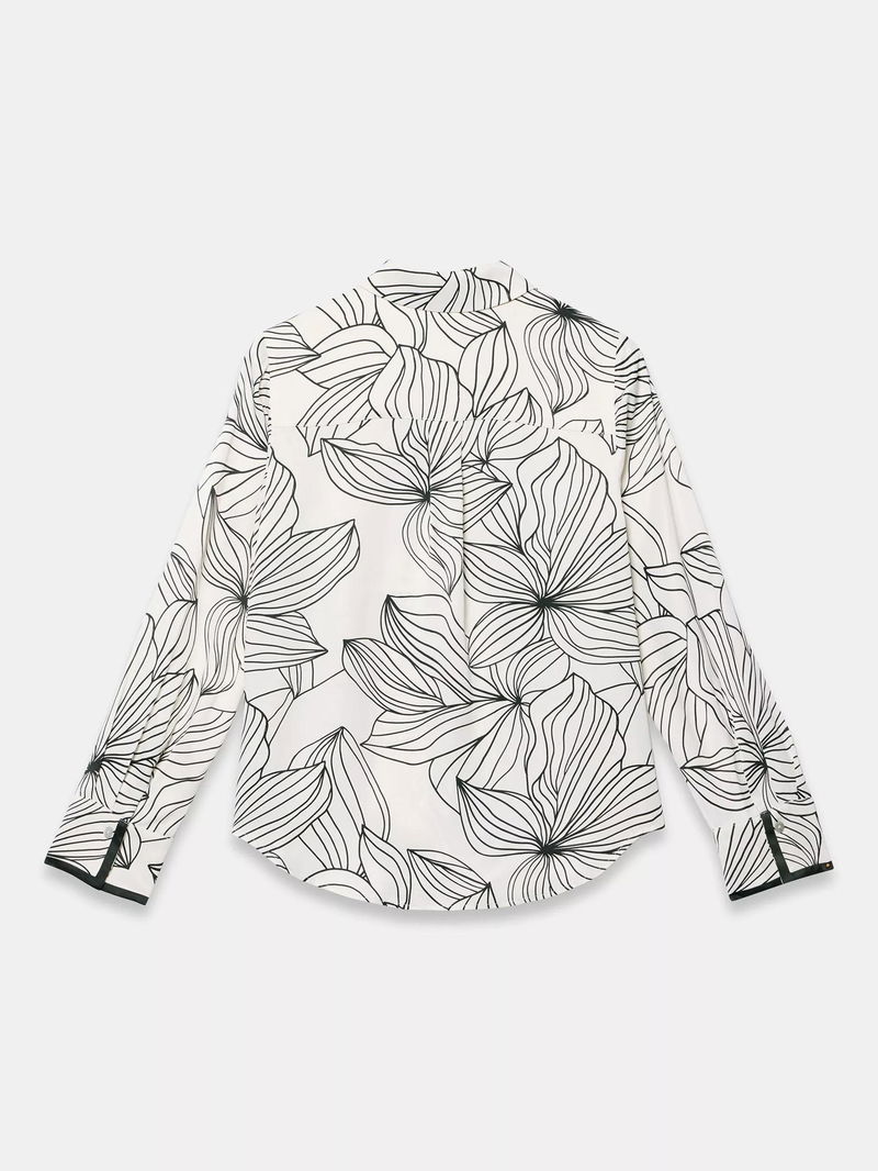Floral Contrast Trim Satin Shirt, Natural Cream