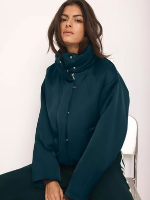 A quilted jacket with a high neckline, long sleeves with a zip fastening through the neckline.