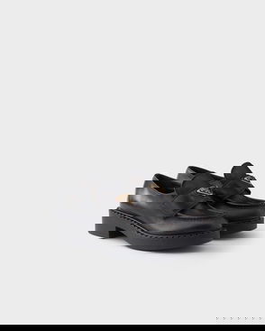A pair of leather loafers by Mint Velvet, set on a flat heel featuring ruched edges and a bow detail.