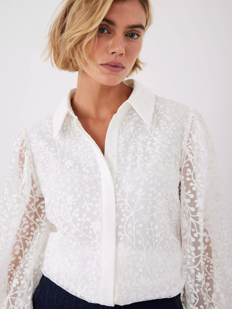 Jacquard Long Sleeve Shirt, Natural Cream