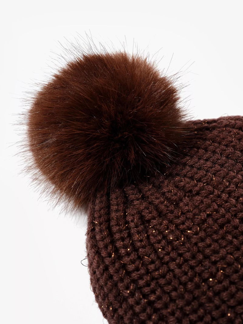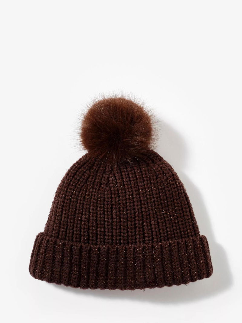 Knitted Bobble Hat, Brown