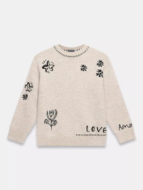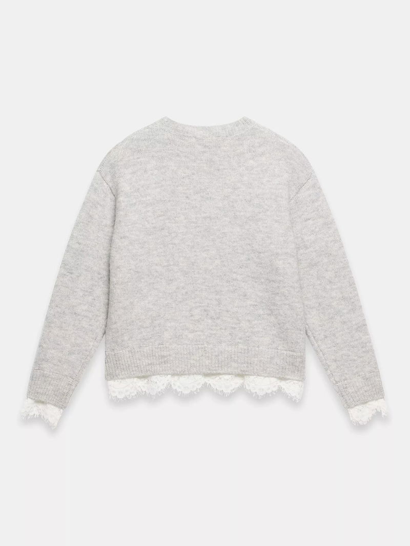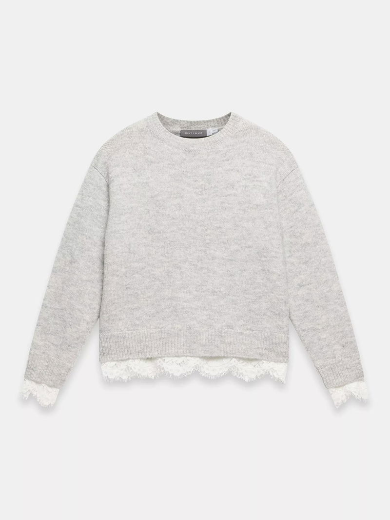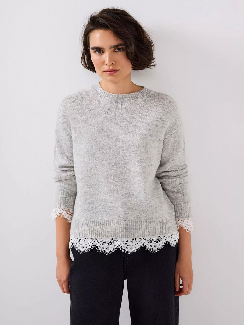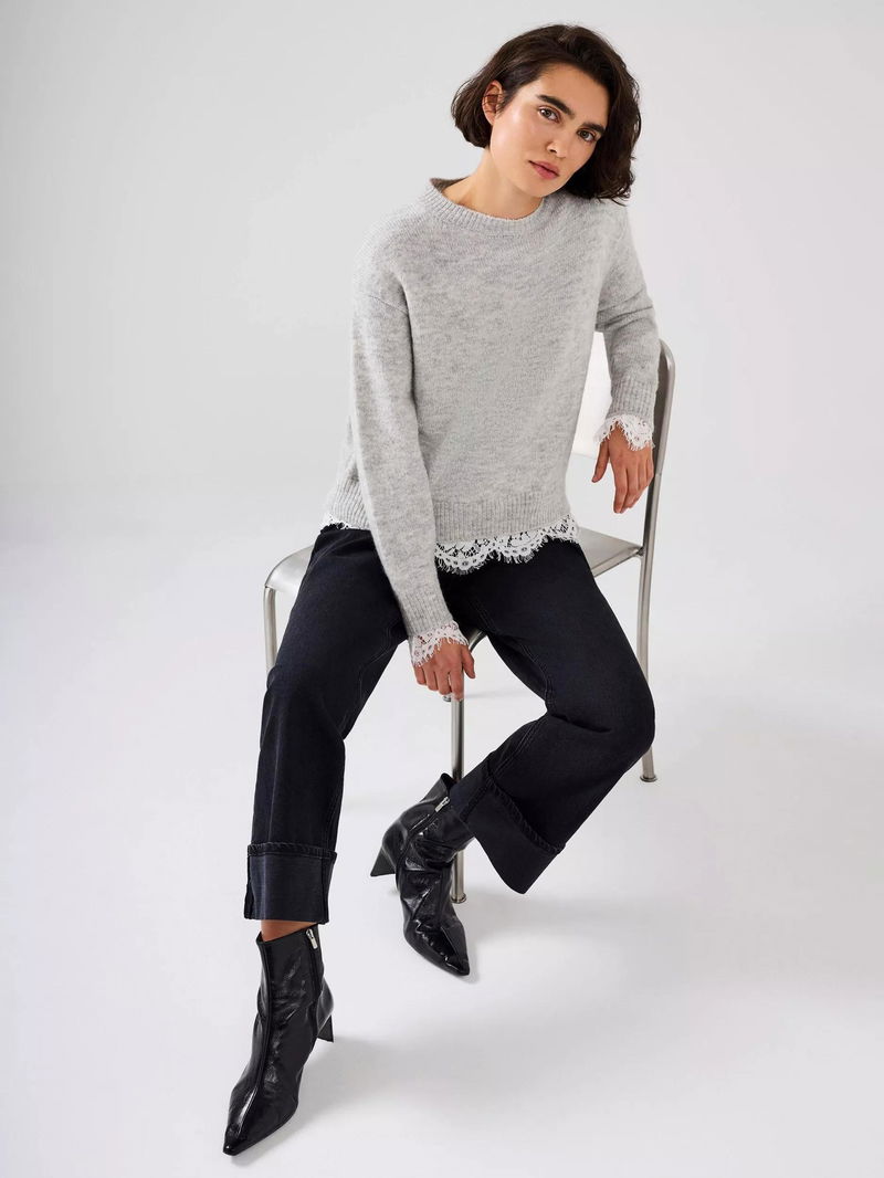 A wool-blend jumper featuring a crew neckline, long sleeves and lace trim detailing.