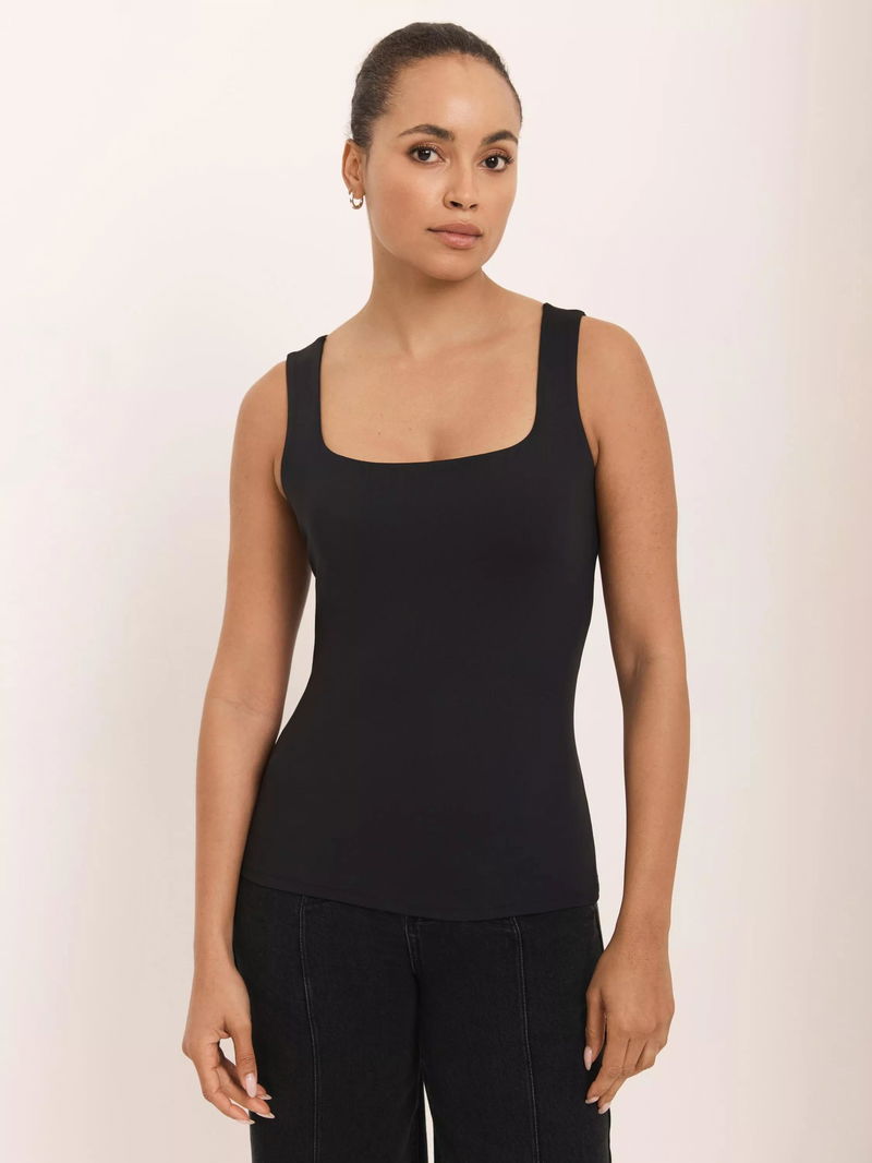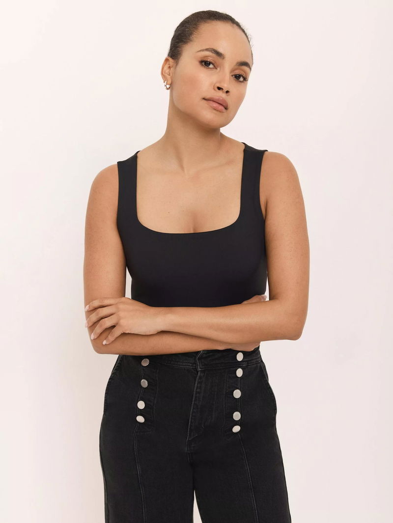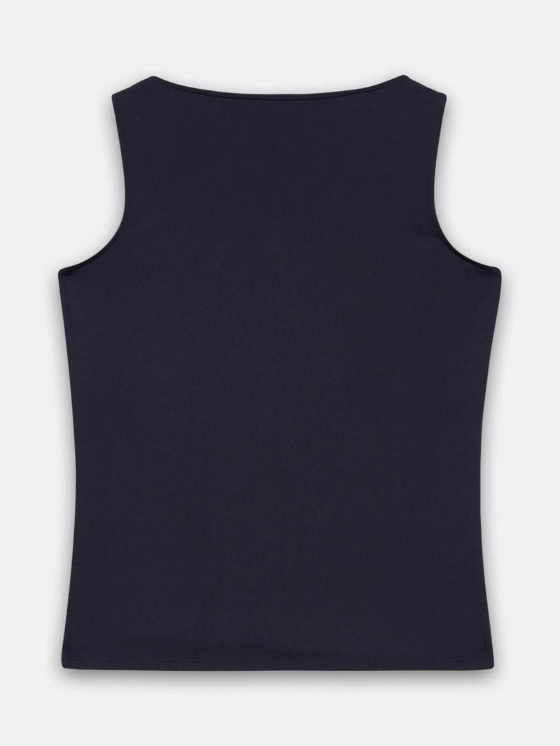 A vest with a scoop neckline.