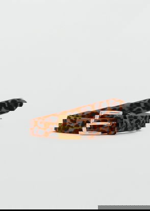 A leopard-textured thin belt with a metallic-tone buckle fastening.