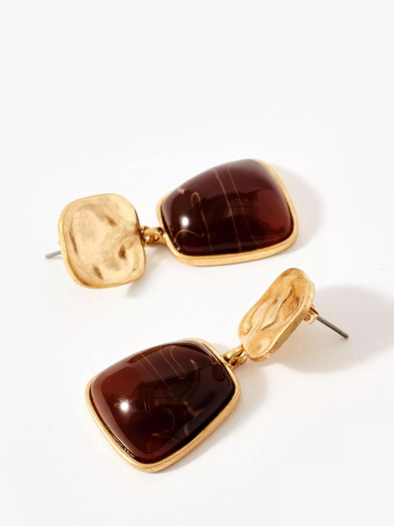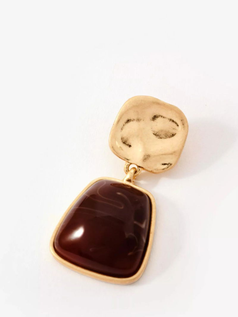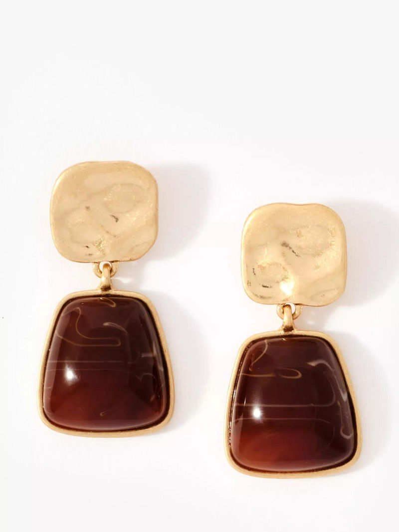 Impeccably designed by Mint Velvet, these earrings fall to a simple but elegant drop design with a hanging marbled stone.