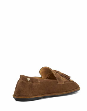 A pair of suede loafers by Mint Velvet, set on a flat heel and featuring a round toe, eyelet fringed trim and bow fastening.