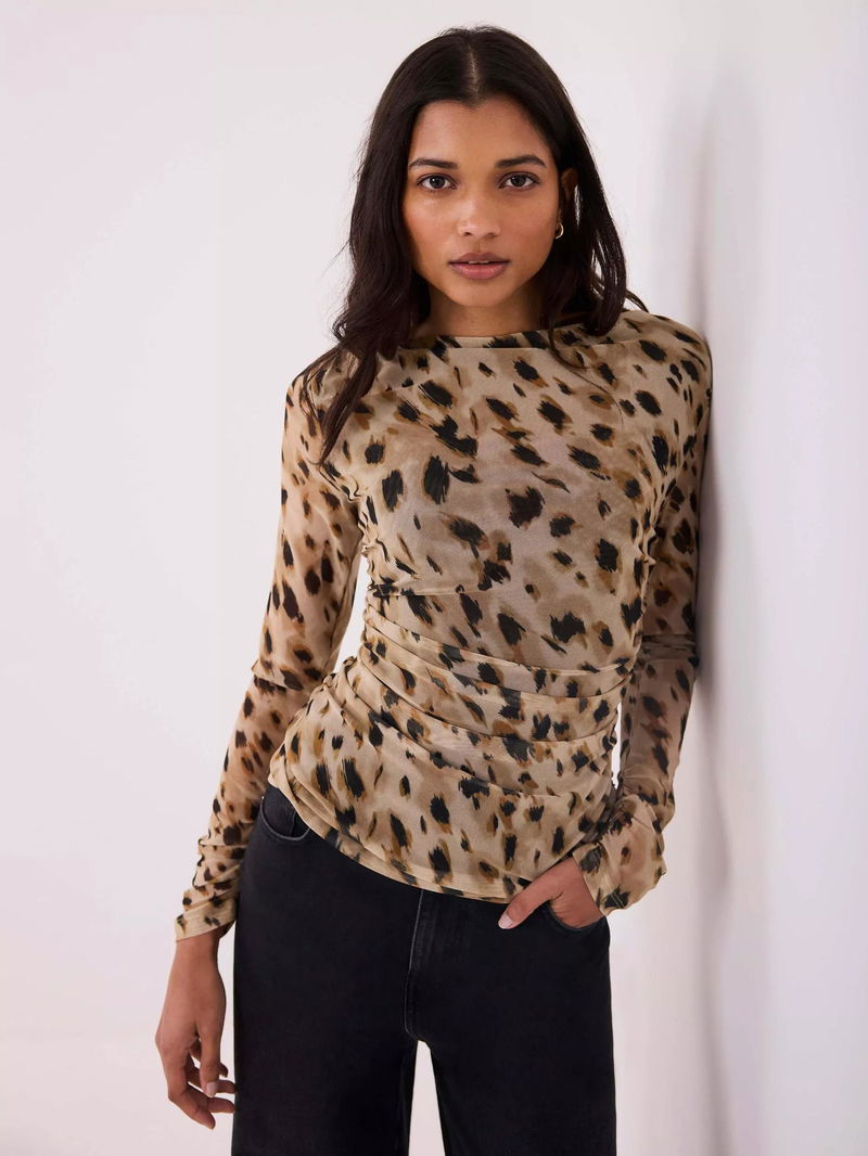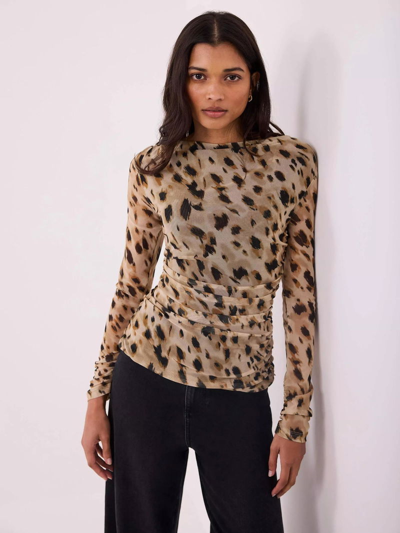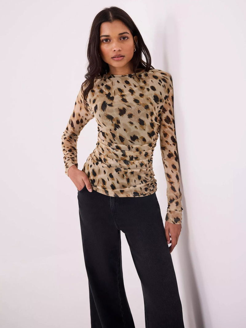 Mesh Long Sleeve Top, Gold