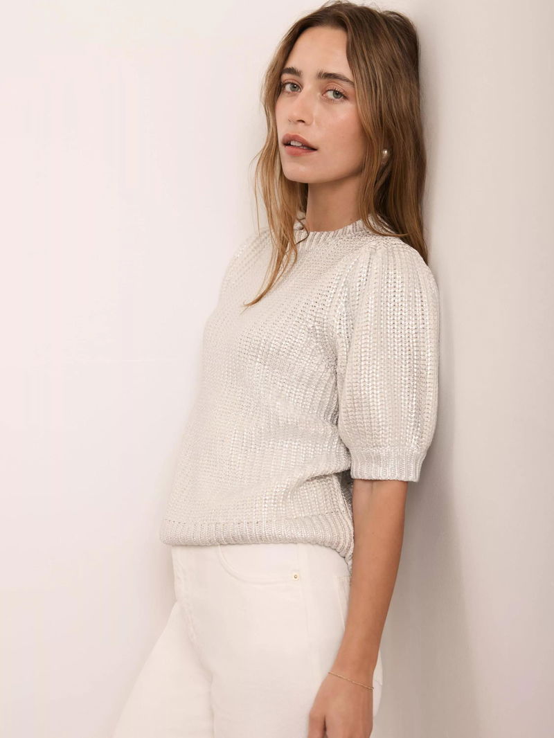 Metallic Knit Top, Silver
