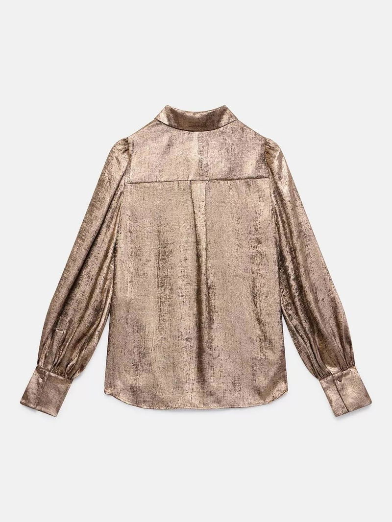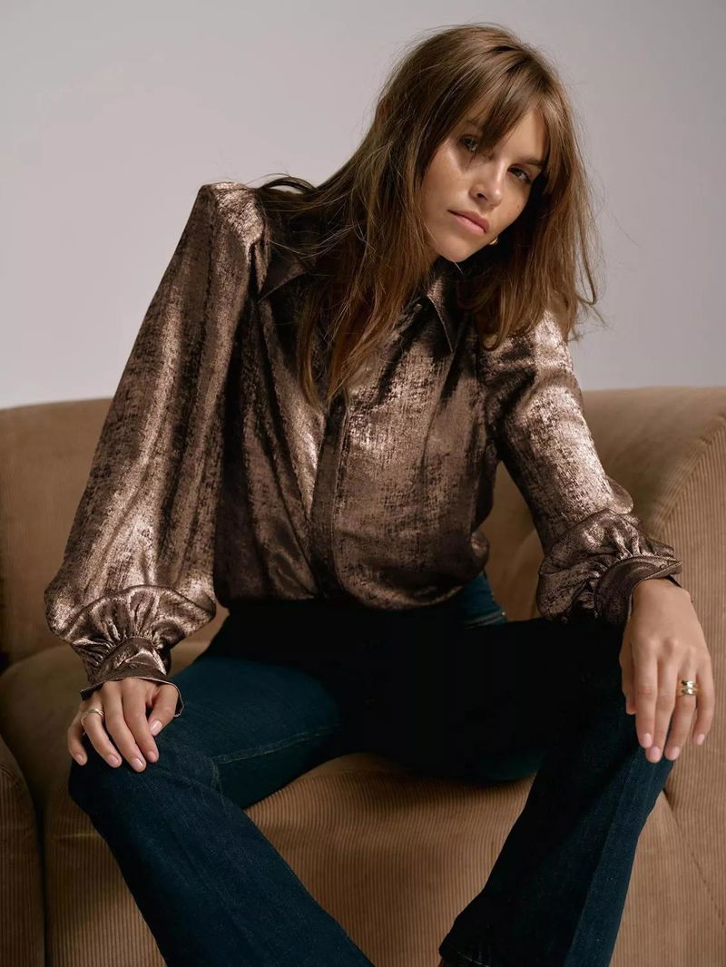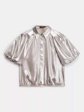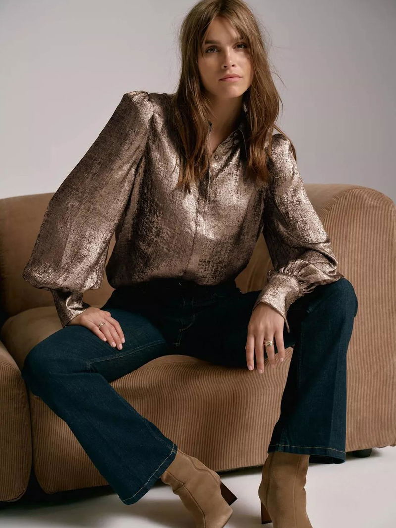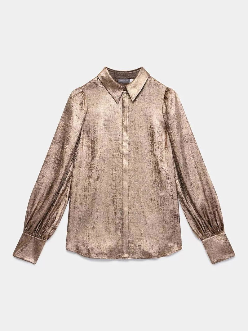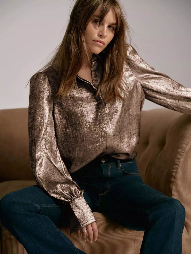 A shirt from Mint Velvet that brings a playful twist to your evening look. Featuring a collar and long puff sleeves, it's elevated in glistening metallics. Perfect for parties and beyond.