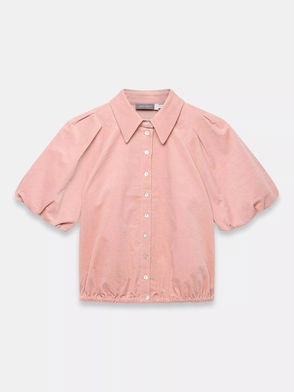 This denim shirt feels relaxed yet sharp, with a tie neck that lets you style it your way. Made from breathable cotton, it features short puff sleeves keeps you comfortable through your day.