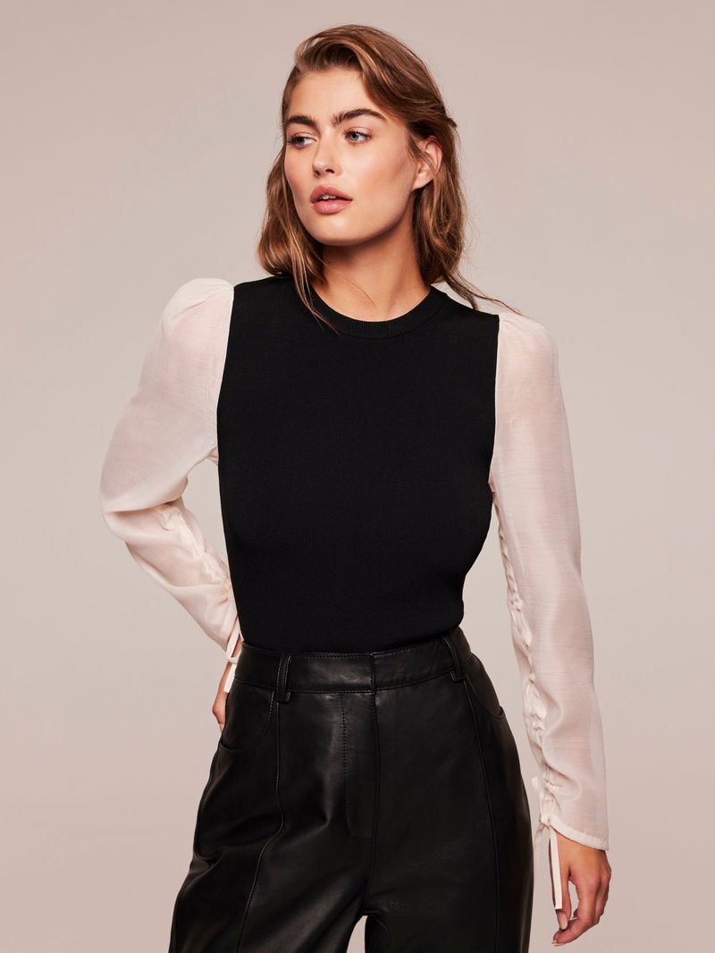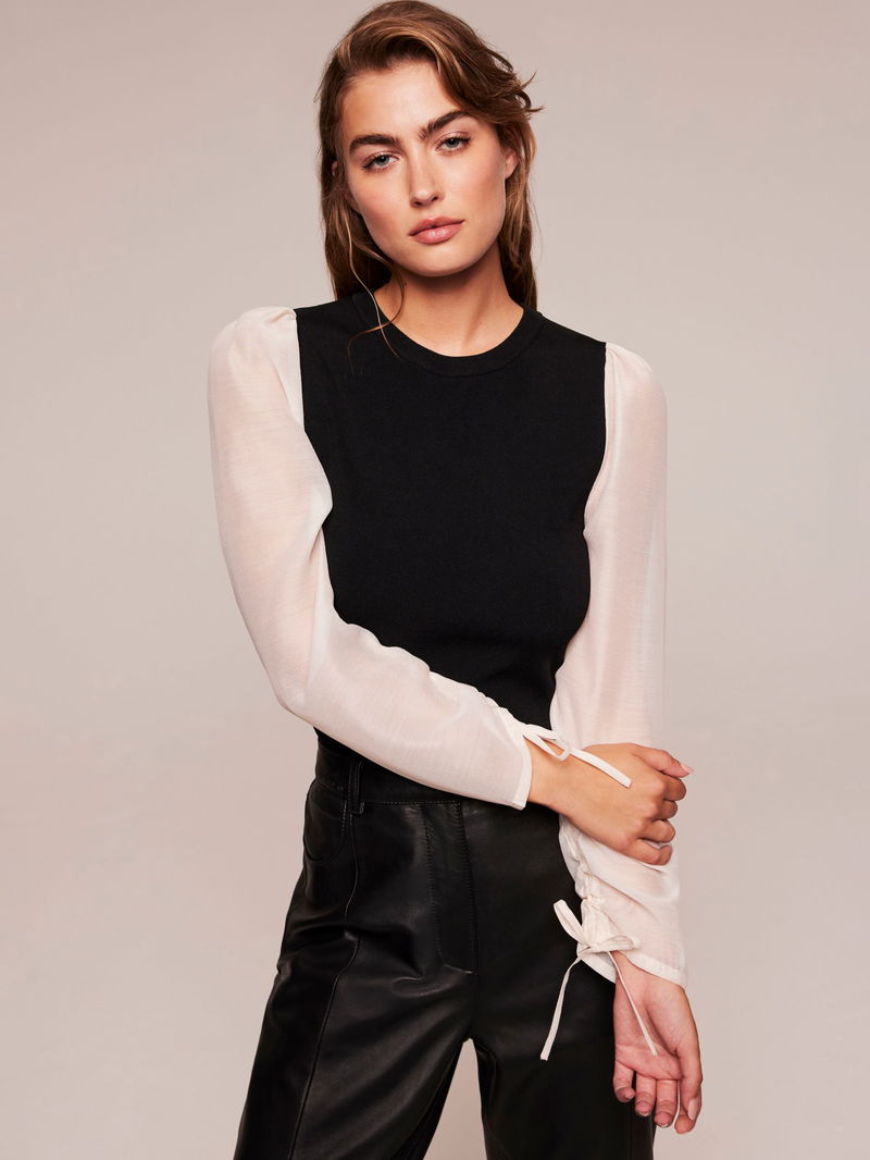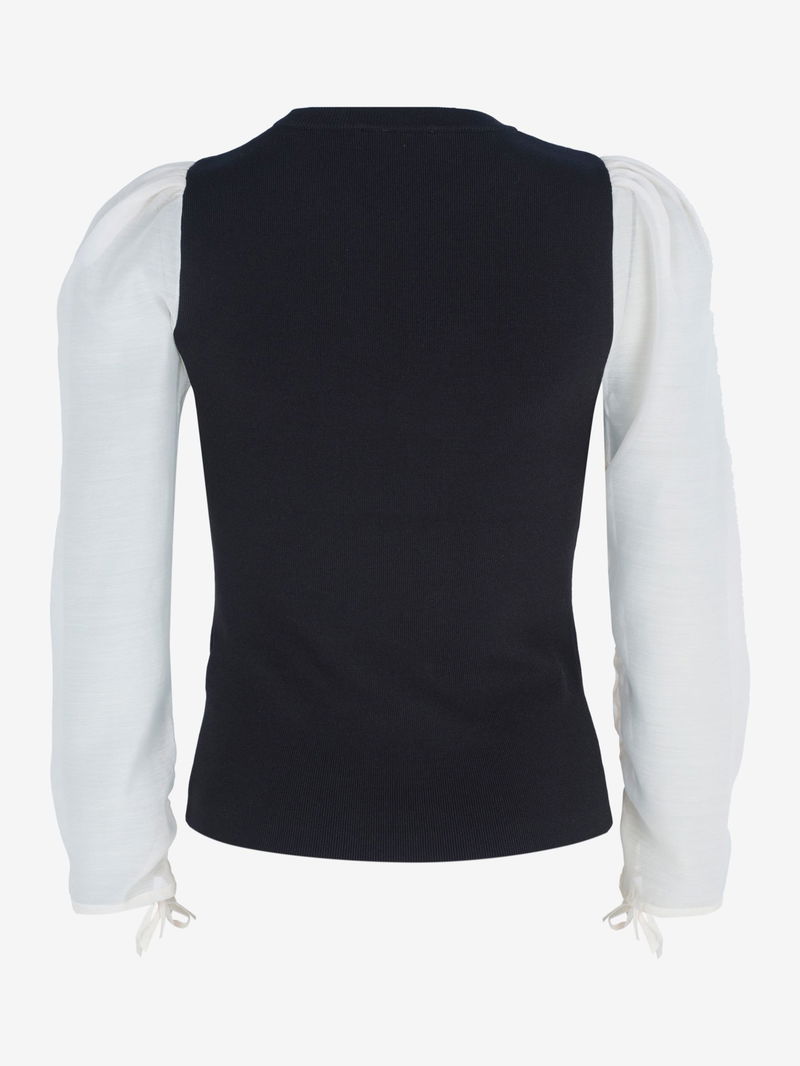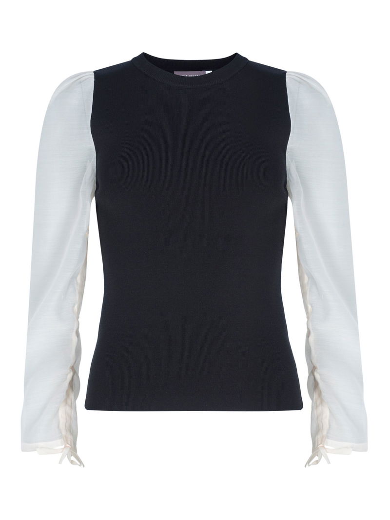 An essential addition to your wardrobe, this blouse from Mint Velvet is made up of a knitted bodice for a smart weekday look. Simply cut with a round neck and long organza sleeves, it is wears well with tailored trousers for a sharp finish.