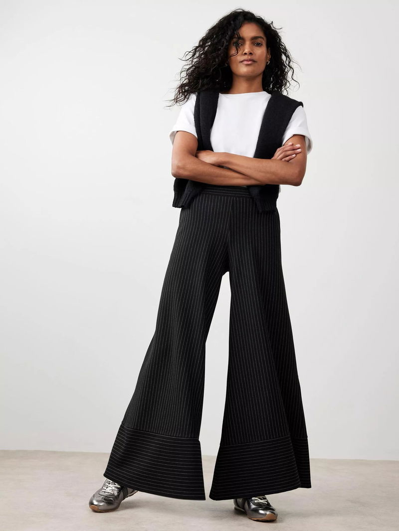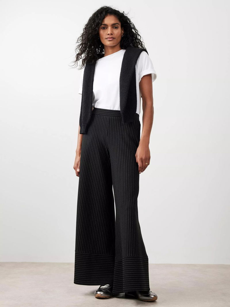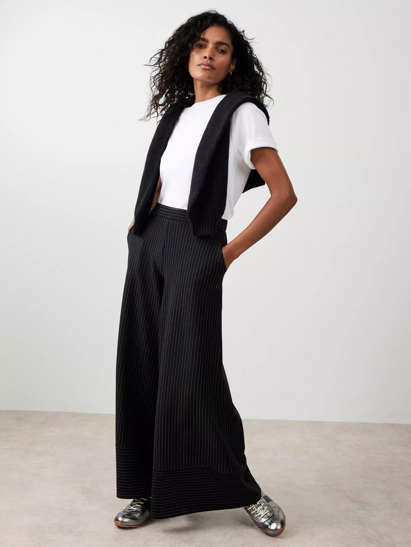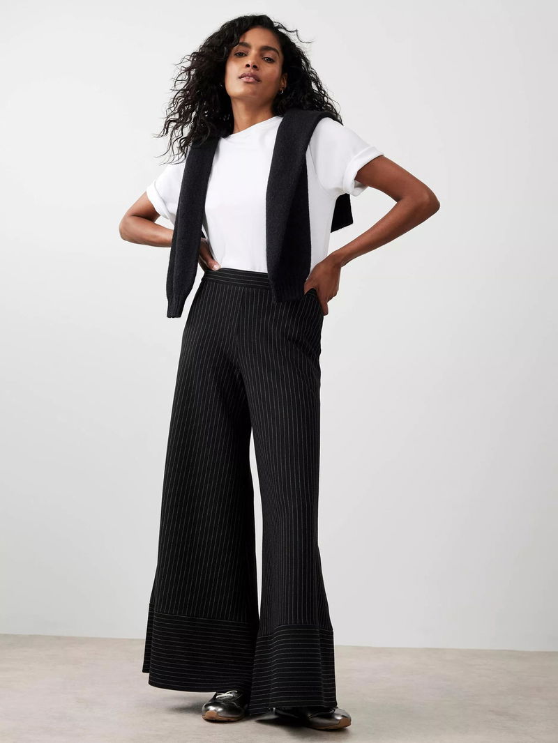 Exaggerated volume meets unapologetic flair with these striped wide-leg trousers by Mint Velvet. They feature a mid rise with a zip fly and regular length hems.