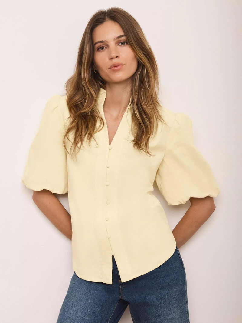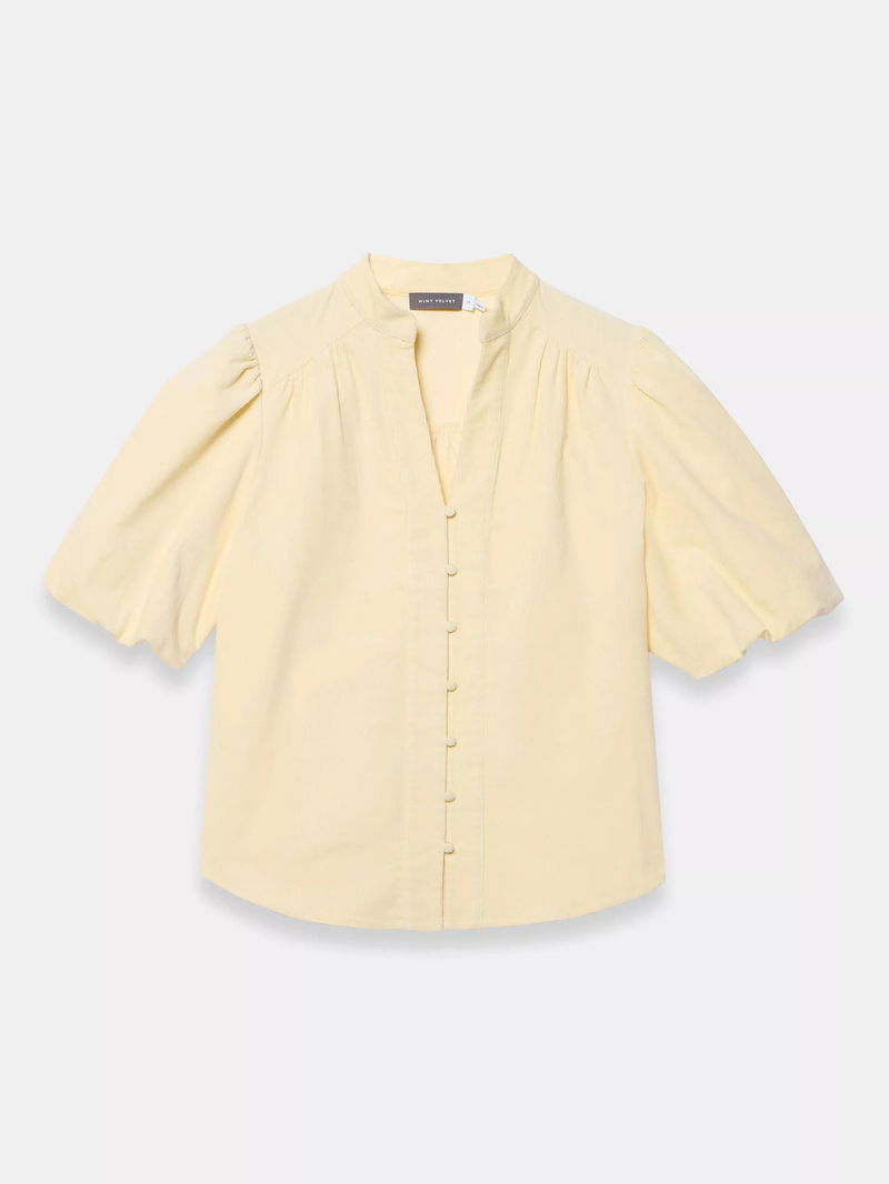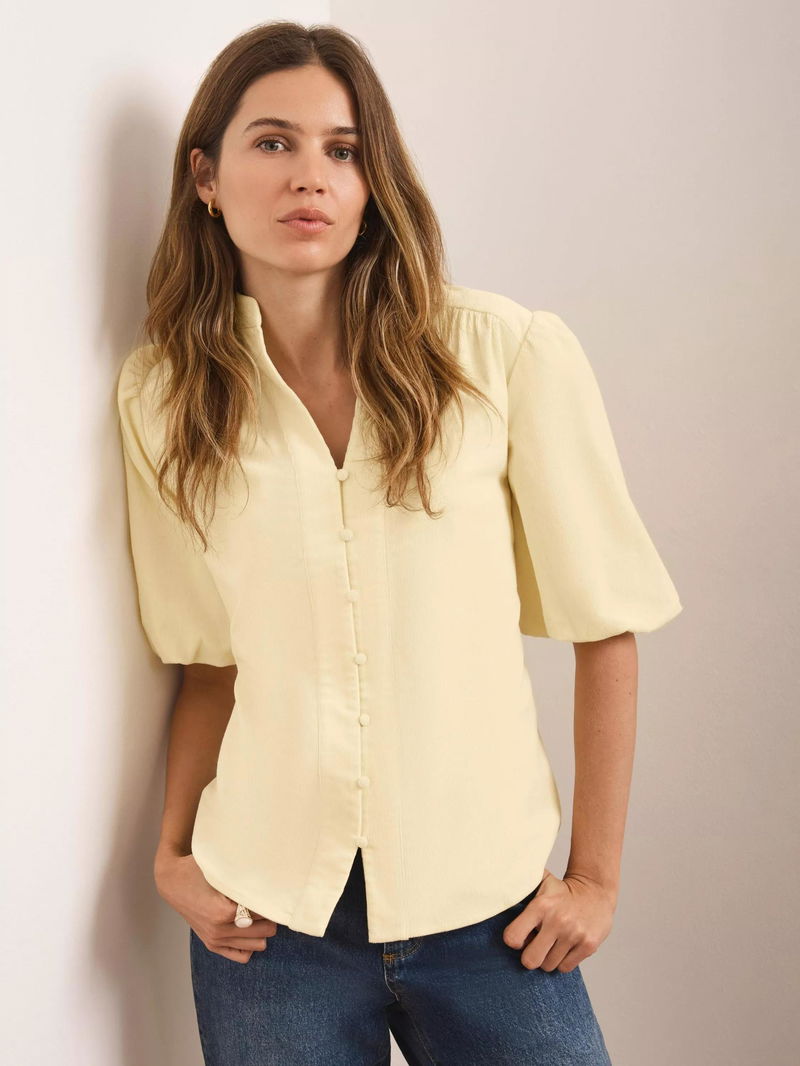 Puff Sleeve Corduroy Shirt, Yellow