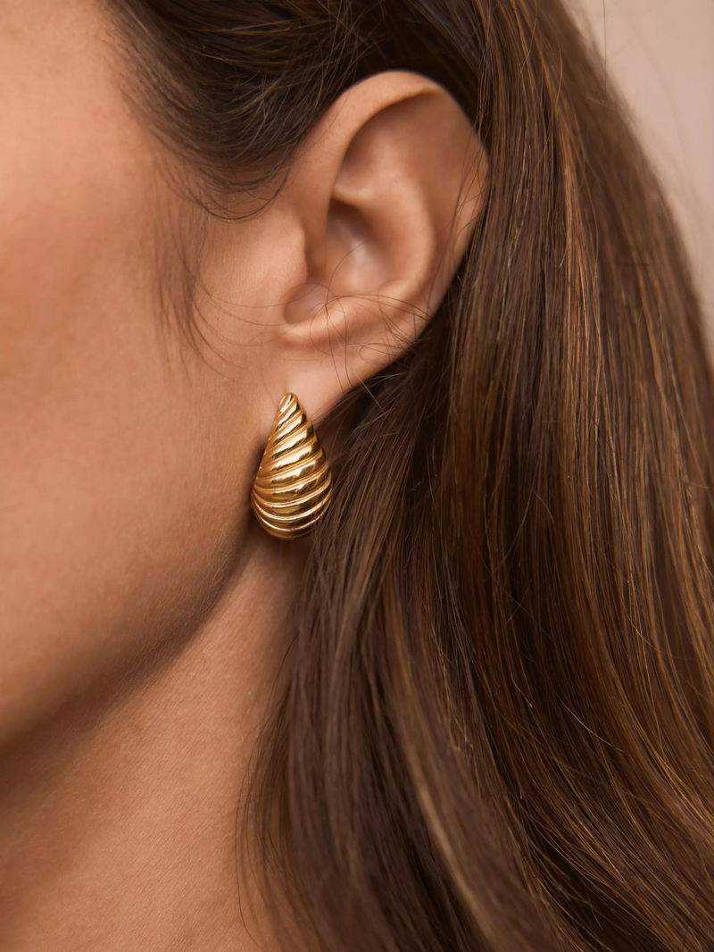 Ribbed Curved Huggie Hoop Earrings, Gold
