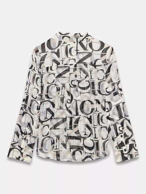 A sheer shirt featuring a classic collar, contrast panelling, long sleeves, buttoned cuffs, drop-back peplum hemline with a concealed button fastening through the front.