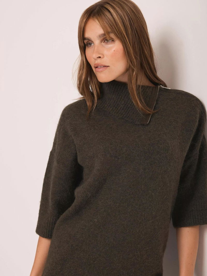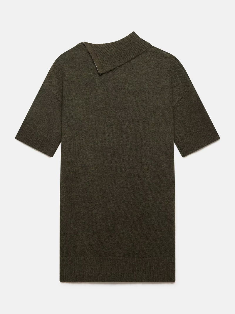 Short Sleeve High Zip Neck Knit Wool Mini Dress