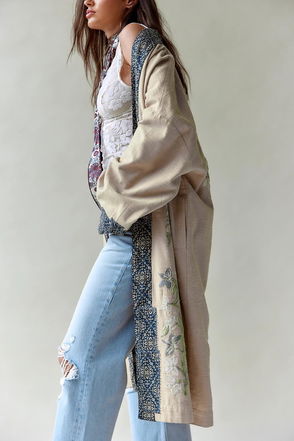 Simply stunning is this smoke grey cupro duster coat. In a flattering silhouette with a draped front and a chic waist belt, layer over dresses or tailored trousers and separates for an effortless vibe.
