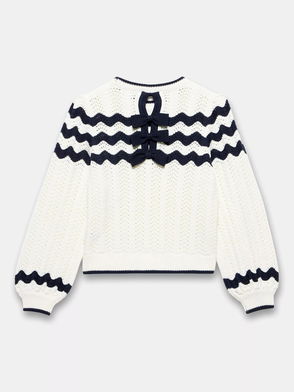 Knitted from pure-cotton yarn for softness and breathability, this loose-fitting jumper is the perfect layering piece for the warmer months. Featuring a star-front design and neutral and ivory stripes, adding subtle gold flecks for some added sparkle. It looks particularly cool with white denim and flatforms this season.
