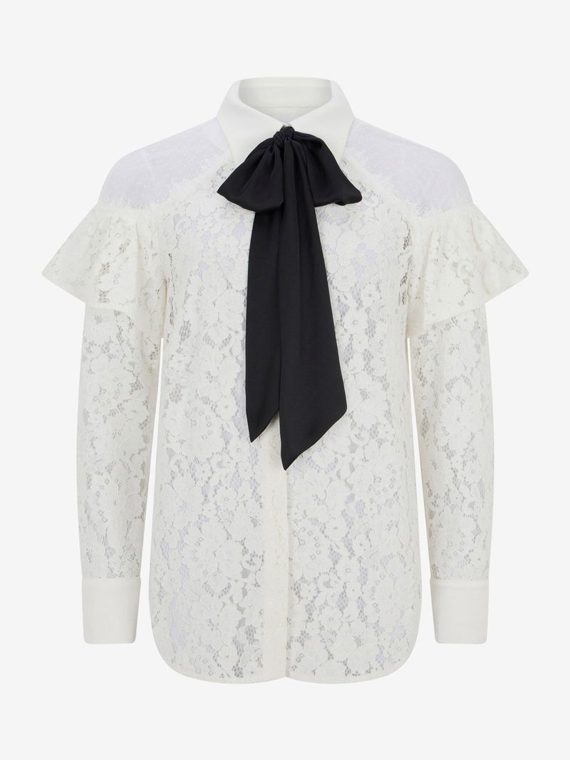 Bringing a neat addition to your wardrobe, this long-sleeved blouse from Mint Velvet is enhanced with delicate lace. Framed with a contrasting neck tie, it is made from a comfortable cotton-rich fabric and will slot seamlessly into your everyday staples.